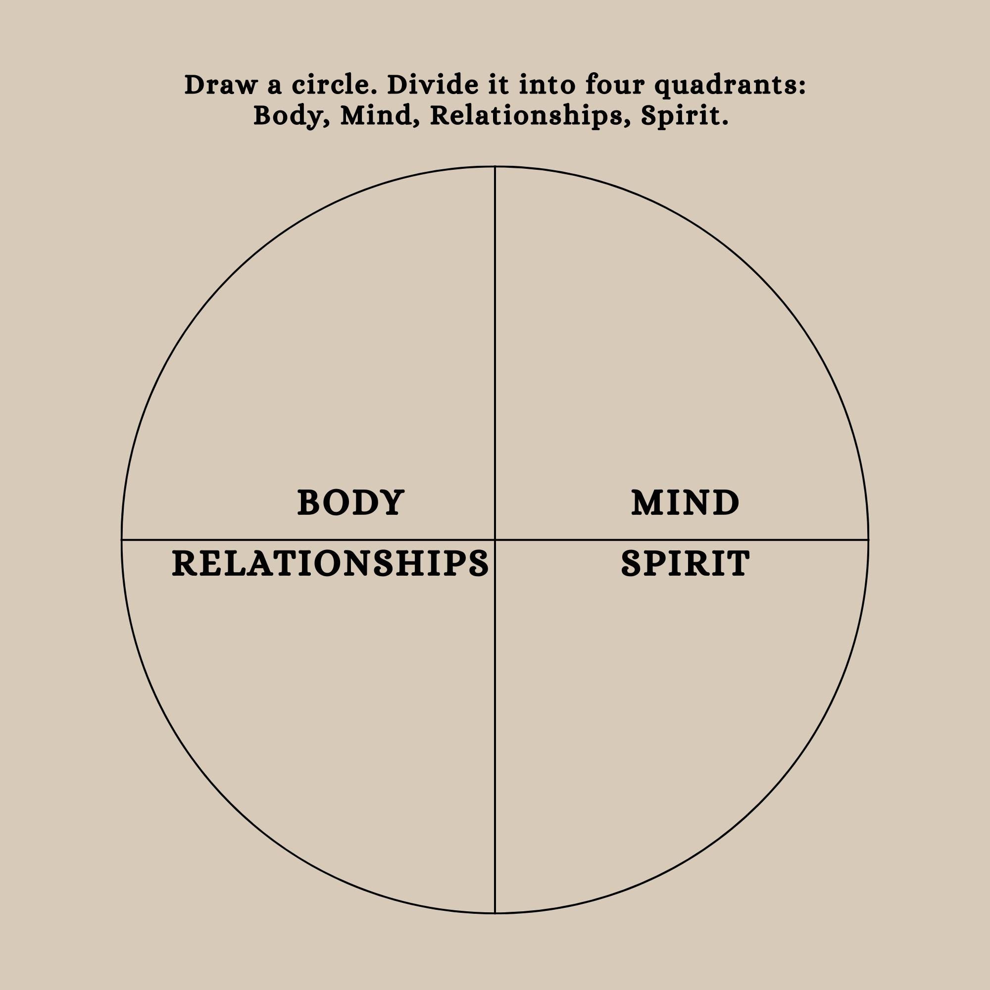 ✨ Meaning Mapping Exercise: Draw a circle. Divide it into four quadrants: Body, Mind, Relationships, Spirit.